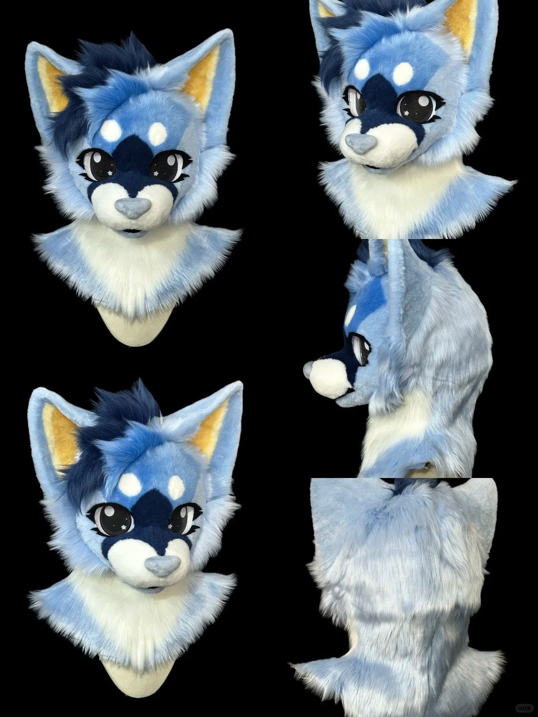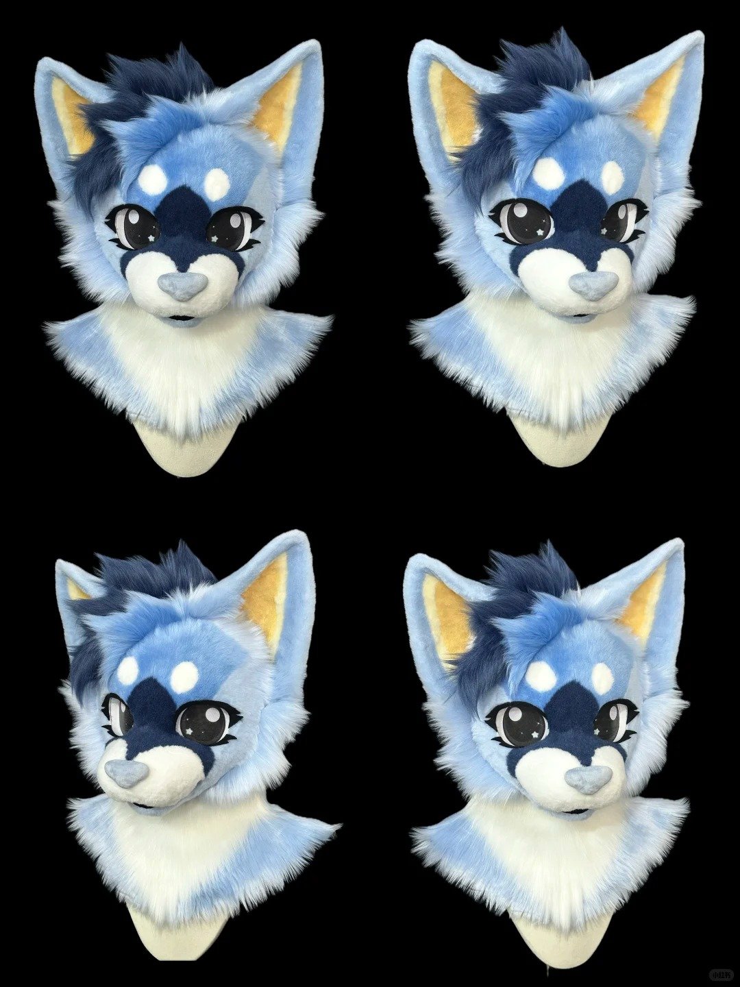 - Overall Style: Features a kemono-style blue fox design with vibrant gradient fur, oversized glossy eyes, soft rounded facial structure, and cute anime-inspired expression—perfect for cosplay, conventions, and character performances.